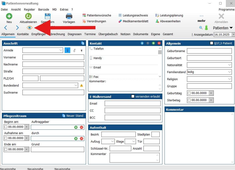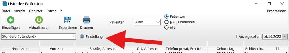 Dazu öffnest du im jeweiligen Programmodul die Standardliste über das Auge.